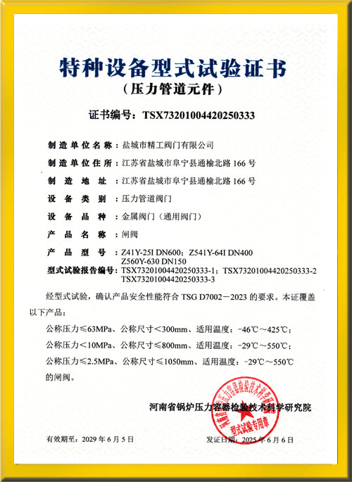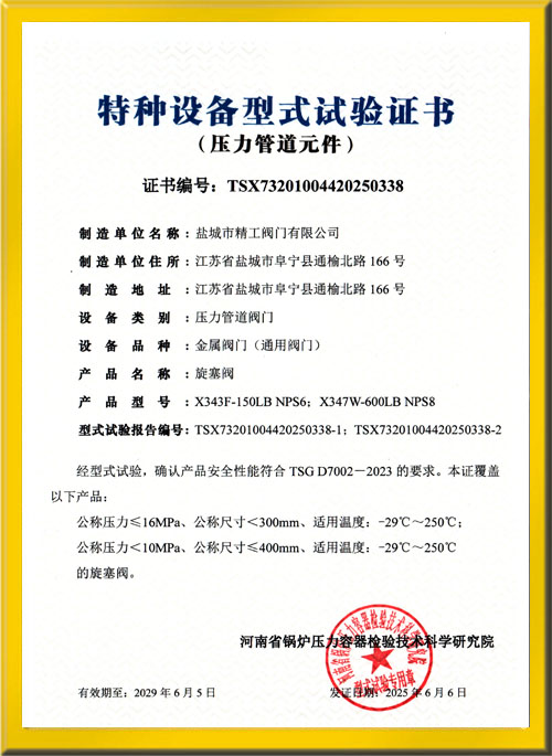 調(diào)節(jié)閥(控制閥)試驗(yàn)證書(shū)